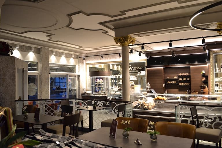 2015 startete der Anbau des Genussbalkons. Er verfügt über 45 wunderschöne Außensitzplätze - eine gestalterische Aufwertung, von dem das gesamte Café profitiert. Im Anschluss erfolgte die umfassende Innensanierung. Das Einzeldenkmal Café Toscana konnte im August 2016 in neuem Glanz wiedereröffnen.